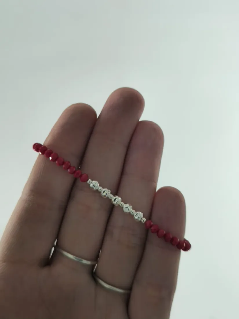 Pulsera checo rojo y bola abollada